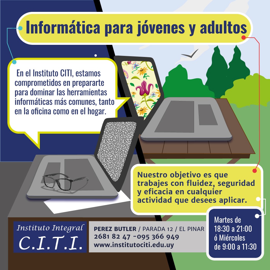 Clases de Informática para jóvenes y adultos disponibles los Martes de 18:30 a 21:00 o Miércoles de 9:00 a 11:30. Comenzamos la semana próxima. ¡Inscríbete hoy mismo! #clasesdeinformatica#informaticaparajovenes#OportunidadesLaborales#Curso#InstitutoCITI#informaticaparaadultos#cursosenelpinar#institutoCITI
